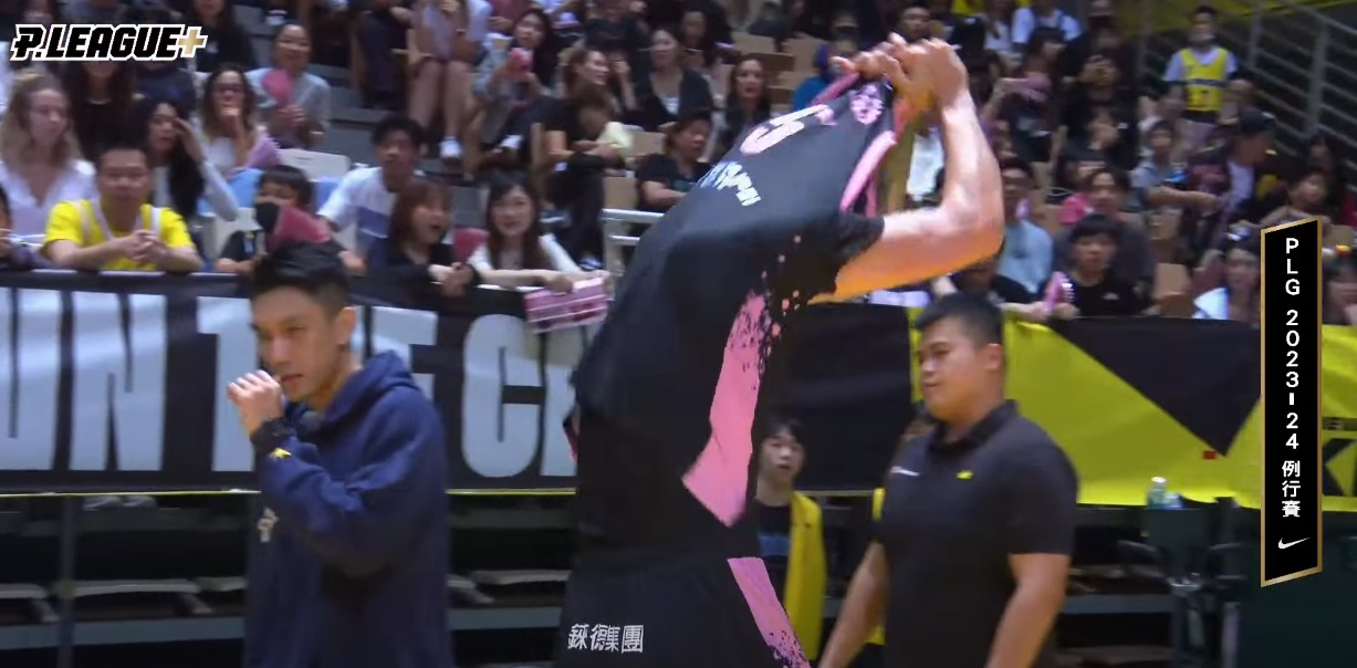 ▲牧倫斯將球衣脫掉爆氣離場,場邊幸運球迷撿到球衣相當開心。(圖/翻攝自PLG YT)