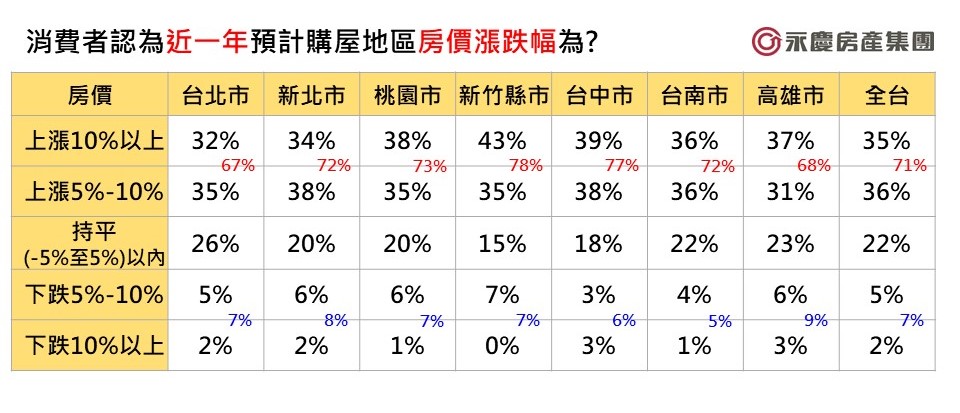 想購屋地區房價有跌嗎?71%消費者認為過去一年房價上漲超過5%