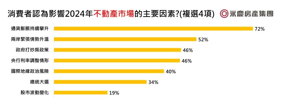 因此,葉凌棋補充,經濟情勢、兩岸關係、地緣衝突、通貨膨脹將是影響2024年房市四大變數。