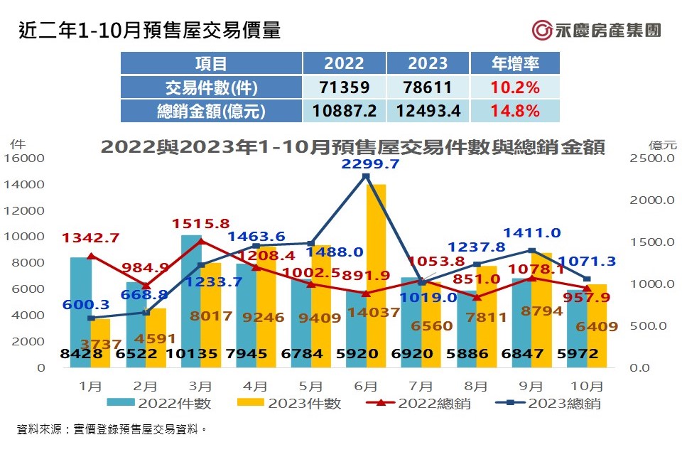 前10月預售屋總銷1.25兆元 交易量7.86萬件
