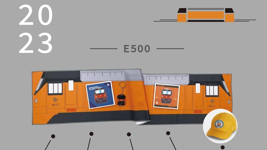 臺鐵局為提升運能及旅運品質,特別規劃在整體購置以及汰換車輛計畫中,採購新式E500型電力機車,並將於10月28日在屏東潮州機廠(鐵道文化園區)辦理見面會,與民眾相見歡!為了歡慶本次盛事,特別精心規劃E500型電力機車周邊商品,包含E500型電力機車運動毛巾、火車紀念帽、壓克力鑰匙圈以及兩款造型吸水杯墊。