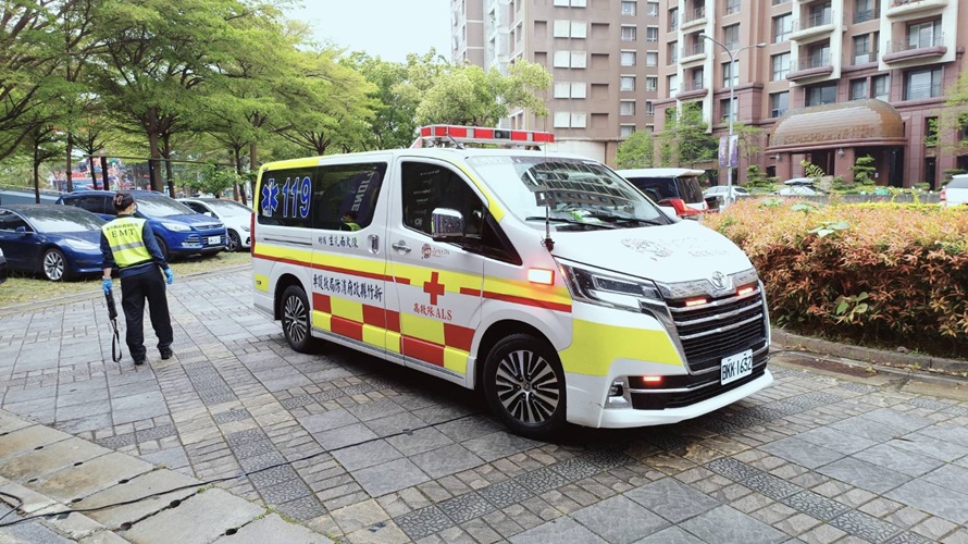 ▲施晉堯被送上救護車送醫。(圖/李宇碩攝)