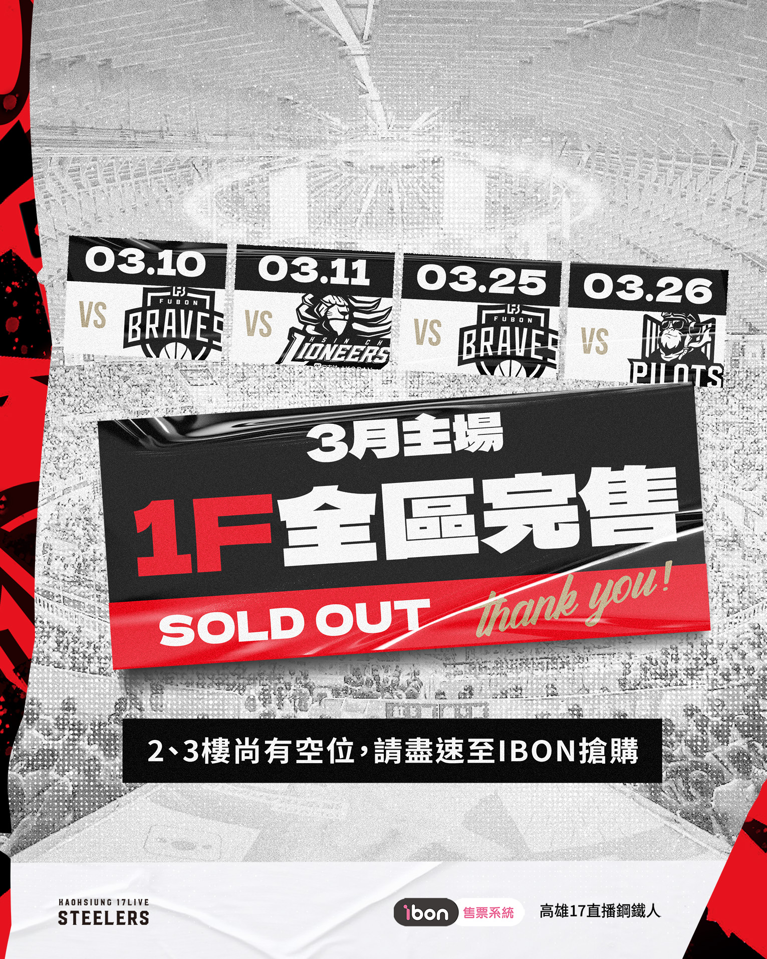 高雄17直播鋼鐵人2月份高雄17直播鋼鐵人客場也都已完售,3月四場主場賽事,一樓區開賣3分鐘內四場全數完售,其中3月第一場賽事對戰富邦勇士,整體售票也已超過9成,接近完售。