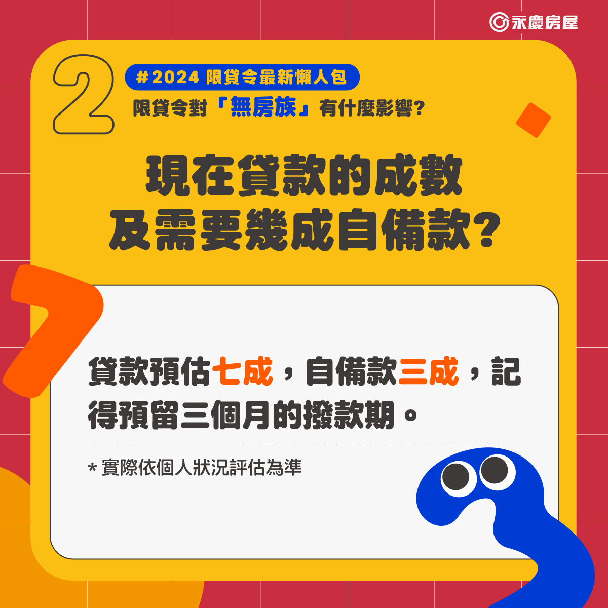 近期房地產市場上鬧得沸沸揚揚的「限貸令」,你看懂了嗎?央行9月份實施號稱史上最嚴打炒房措施「第七波信用管制措施」,管制內容包含「限縮放款成數」、「放款人條件審查從嚴」、「縮短寬限期」等,被稱為「限貸令」。雖然央行總裁楊金龍表示,「限貸令」主要管制投機客,但各銀行不動產放貸資金緊縮,可能「貸不到」的消息持續發酵,不免讓首購族擔心買房貸款成數受影響、甚至會貸不到款!究竟「限貸令」對首購族有什麼影響,以及貸款時需要注意什麼?永慶房屋契約部資深經理陳俊宏為首購族解答。