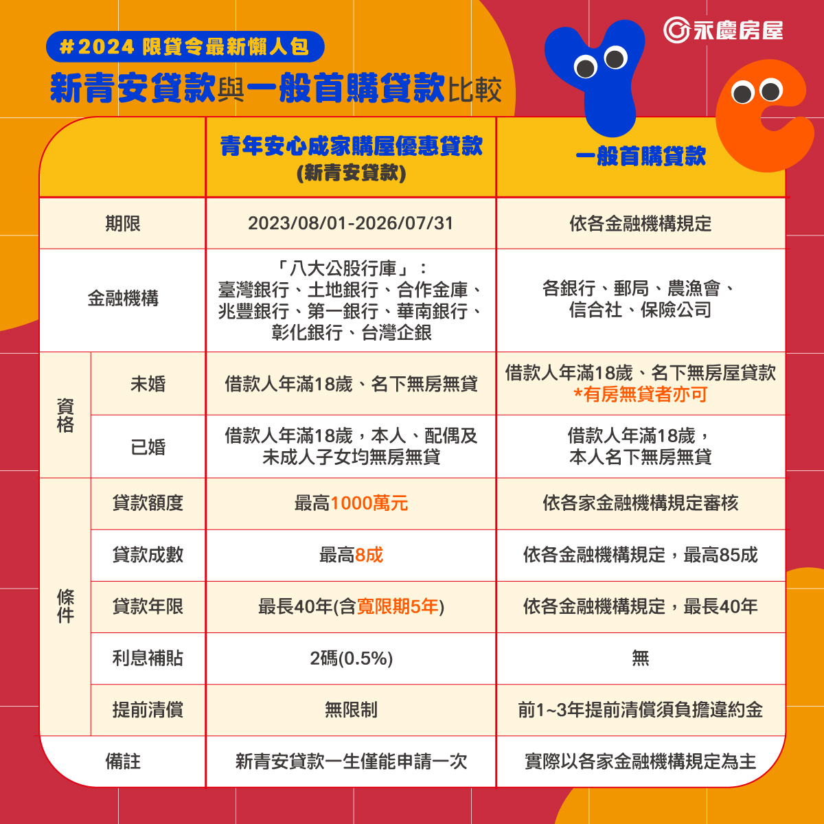 陳俊宏資深經理進一步說明,若申請人是名下「無房屋、無房貸」的無房族,申請房貸時,貸款成數最高可到8成,能享有寬限期,並且也有機會可以申請「新青安」房貸;但若申請人是「有房屋、無貸款」,想再買屋並申辦房貸,一樣有機會最高貸款到8成,但不僅沒有寬限期,也無法申請「新青安」貸款。