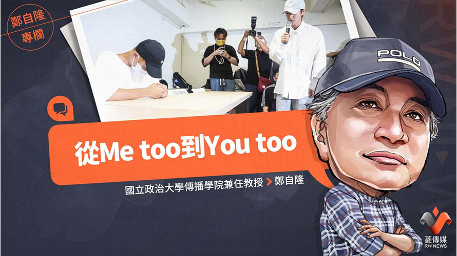從Me too到You too,可以感受東西方文化差異,西方是個人主義,因此性騷的Me too是「面對自己」,雖然加害者也受到社會懲罰,但動機或精神還是經由自省得到解放;東方社會是集體主義,每個人都被納入體制檢視,因此You too是經由「指控他人」,以獵巫獲得群體的淨化。