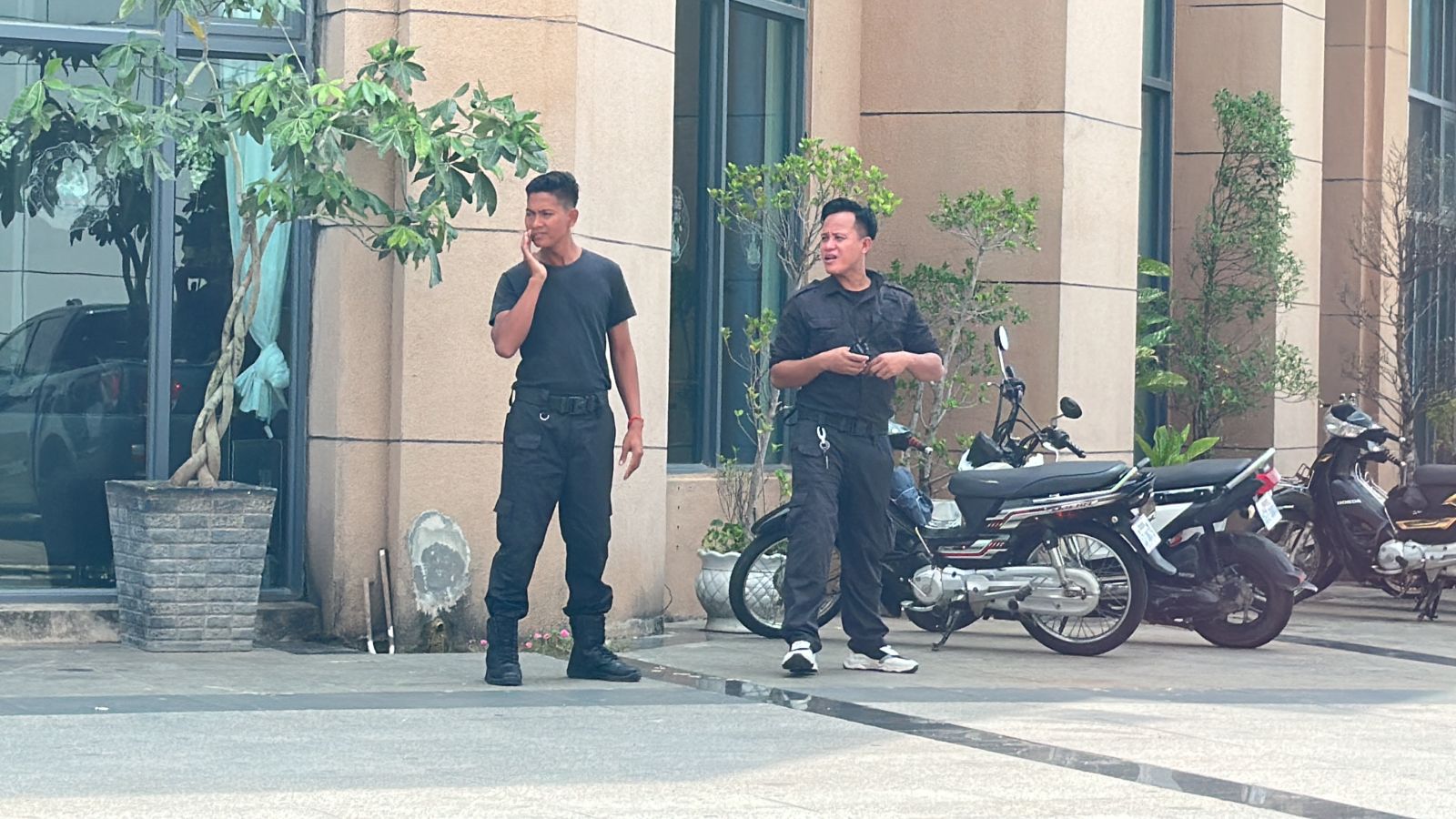 ▲西港所有的詐騙園區門口,都有黑衣人嚴格控管進出。