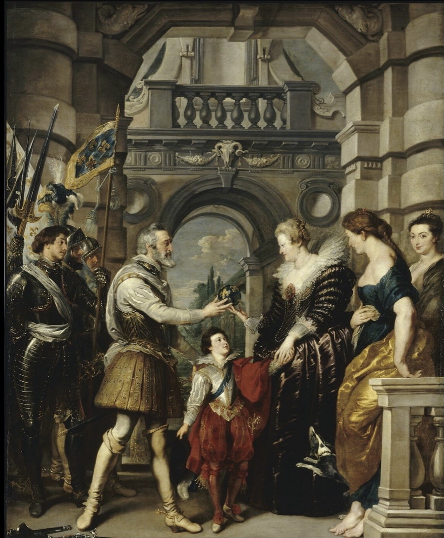 法王亨利四世(Henri IV,1553年12月13日-1610年5月14日)是法國波旁王朝的創建者,1589年,他在父王亨利三世遇刺身亡後即位。1600年,他娶了來自義大利豪門家族梅迪奇的瑪麗,瑪麗受冊封皇后,接連位皇室生下了三子三女。