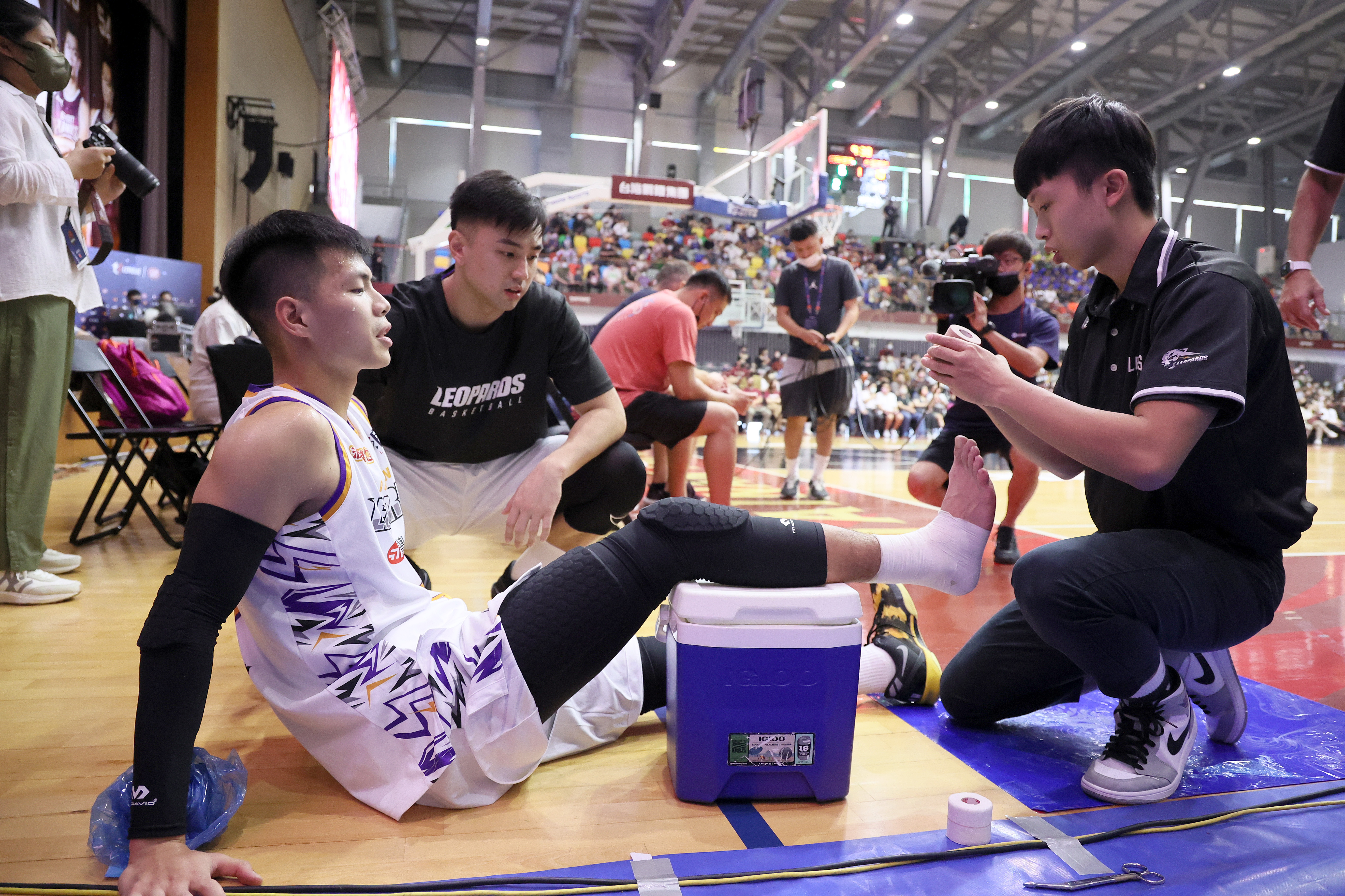 ▲陳孝榕第一節就扭傷,下半場更是都在球員席無法上場。(圖/T1提供)