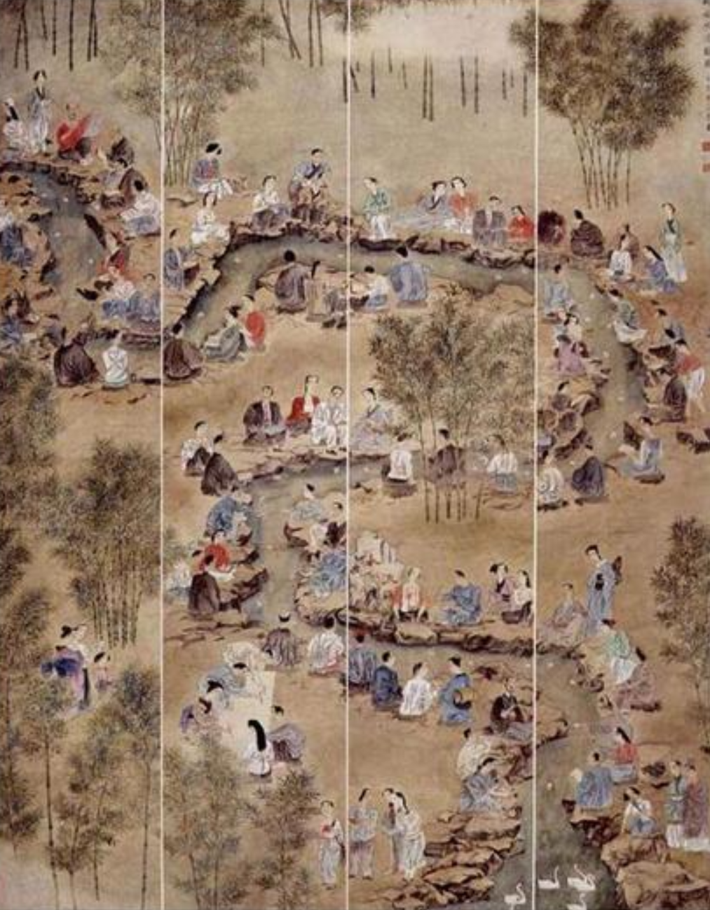東晉穆帝永和九年(西元353年),王羲之想起當年石崇「金谷園雅集」浮誇盛大的壯舉,輸人不輸陣,他決定見賢思齊,還想要更文青、更脫俗來舉辦類似的雅集活動。想來想去,最後選定在三月三日「上巳節」這天來辦趴。
