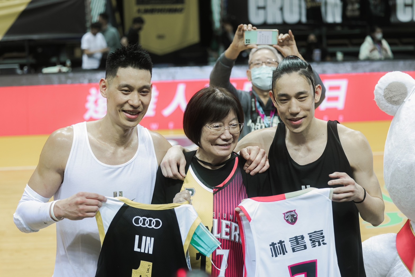 這場林家兄弟同場對決,成為全場關注焦點,賽前特別邀請林書豪、林書緯兩兄弟與林媽媽於場中合影,林媽媽在賽前也特別提到,希望兩兄弟與所有球員都不要在比賽中受傷。