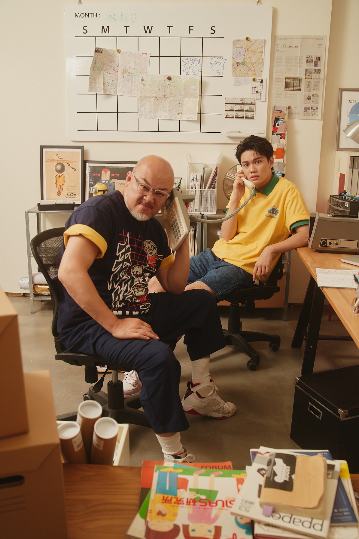 ▲劉亮佐、劉子銓選擇透過撞色的卡通聯名款搭配,呈現兩人對於童趣的追求,以及截然不同的個性。(圖/品牌提供)