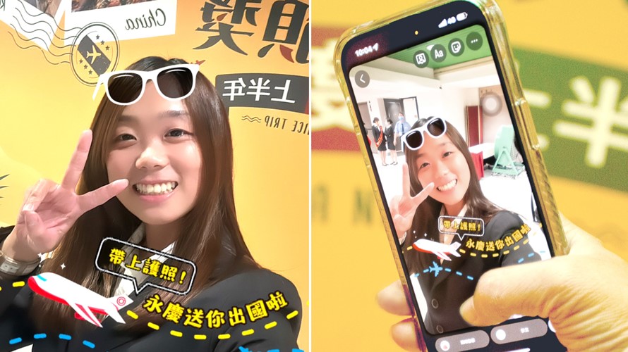 ▲今年不只送經紀人出國旅遊,特別設計超Q的社群濾鏡特效,線上線上都要出國玩。(圖/永慶房屋提供)