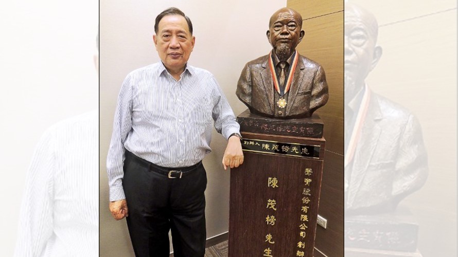 ▲聲寶公司董事長陳盛沺與創辦人陳茂榜先生銅像合影。