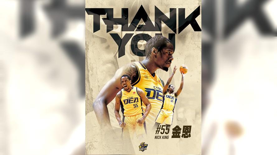 新北中信特攻籃球隊今(5)日正式宣佈,洋將金恩(Nick King)合約期滿離隊,成為自由球員。金恩在為中信特攻效力期間,與球隊完成隊史首座總冠軍,精湛的個人進攻技巧,打出許多難以忘懷的精彩賽事,很遺憾無法與金恩達成續約共識,祝福金恩未來職業生涯一路順遂。