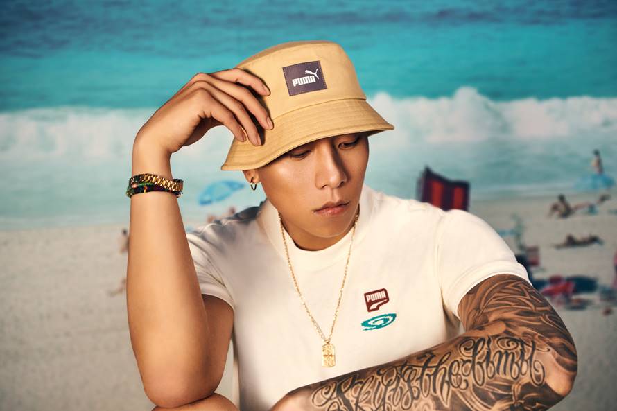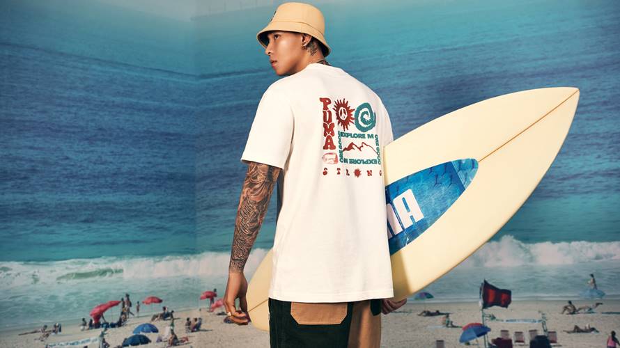 潮流圈三巨頭 E.SO 瘦子、Julia 吳卓源、和謝欣穎分別以夏日海灘祭為背景,搶先穿上 PUMA RS-X EFEKT 復古老爹鞋解鎖今夏人氣穿搭流量密碼。E.SO 瘦子上身欽選 PUMA 純白印花短袖 T 恤,胸前海浪圖騰以及背後 Explore More Good 字樣展現滿滿夏日熱血氛圍,下身搭配 PUMA 拼接撞色燈心絨短褲,為整體穿搭增添繽紛色彩。Julia 吳卓源十足展現陽光女孩的魅力,穿著 PUMA Brand Love 系列短袖 T 恤,下身搭配寶寶粉藍 PUMA T7 高腰短褲,小露性感打造完美身形比例。壓軸登場的謝欣穎則是以波希米亞風展現異國魅力,上身選定大地色 PUMA 羅紋合身短版 T 恤,露出訓練有成的性感腹肌,下身搭配同系列羅紋喇叭褲,上短下長的小心機穿搭法則成功打造9頭身的超模比例,同時以女孩最愛的 PUMA SENSE 植物皮革水桶包點綴, 可說是夏日精品系女孩穿搭指南。