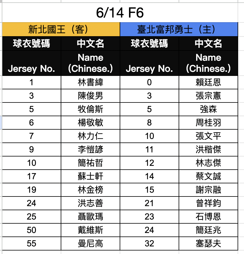 ▲兩隊14日冠軍賽登錄名單。(圖/PLG提供)