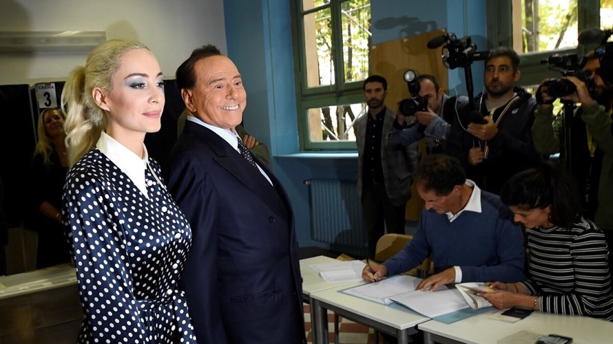 ▲歐洲議會議員、前義大利總理西爾維奧·貝魯斯柯尼偕妻子瑪爾塔法西納9/25現身投票。(圖/ 頭條號)