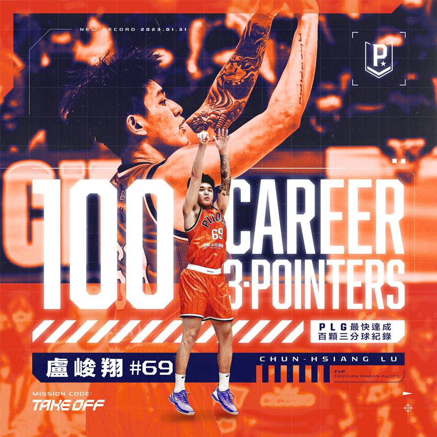 PLG/桃園領航猿主場8連勝追平聯盟紀錄 盧峻翔生涯100顆三分球到手