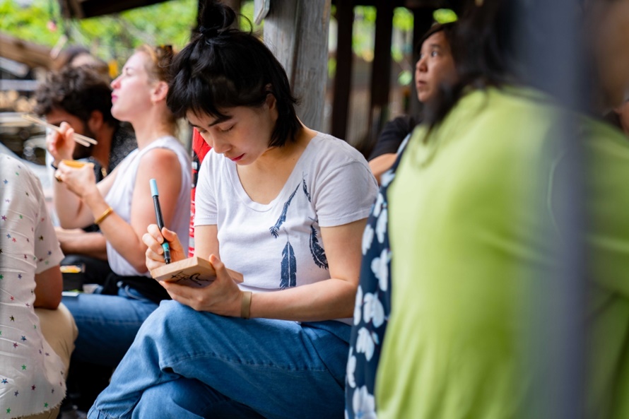 ▲何超儀前往日本神社為福島祈福,親筆於木製奉納物「繪馬」寫下祝福並簽名。(圖/852Films提供)