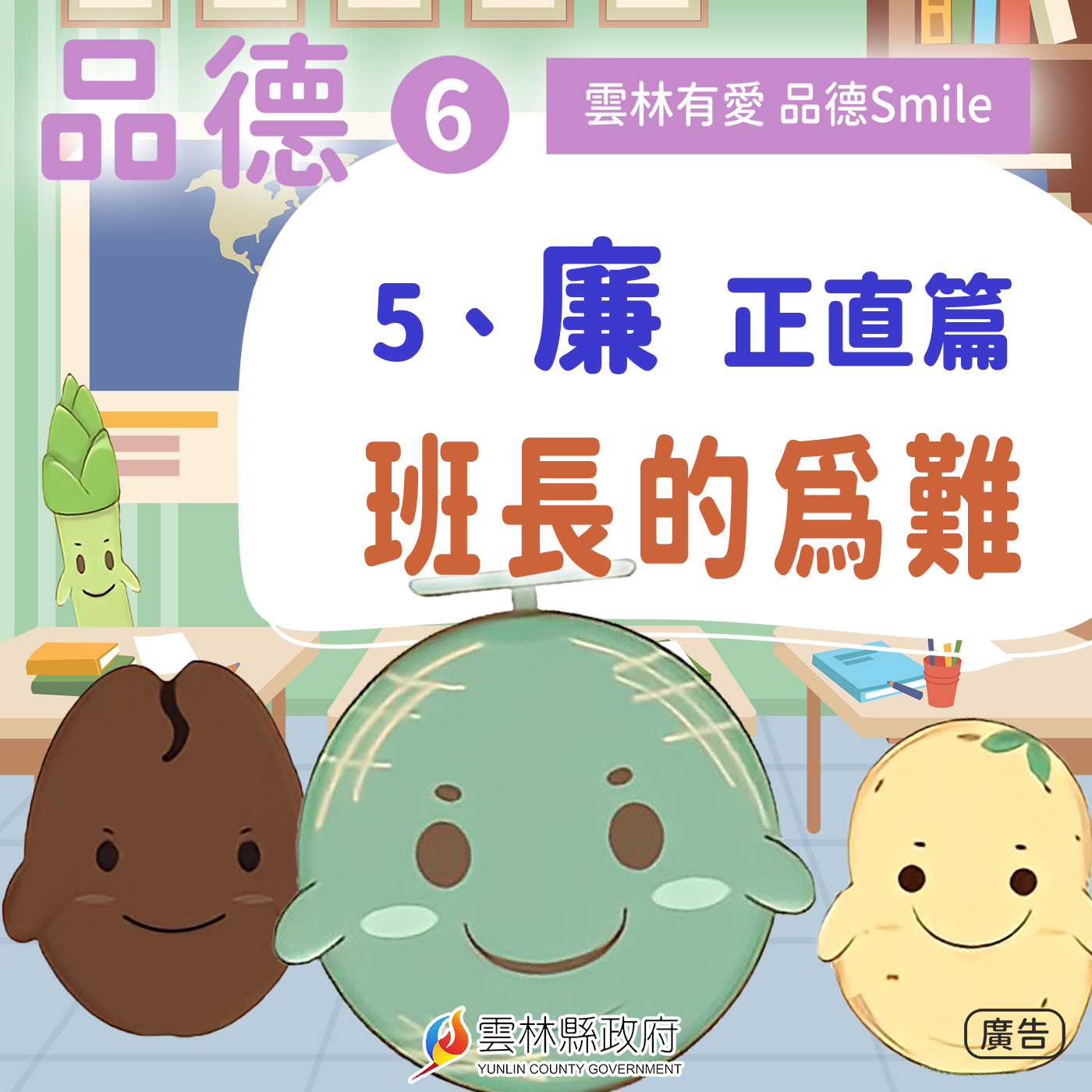 「雲林有愛 品德Smile」-品德6。廉-正直篇。班長的為難。