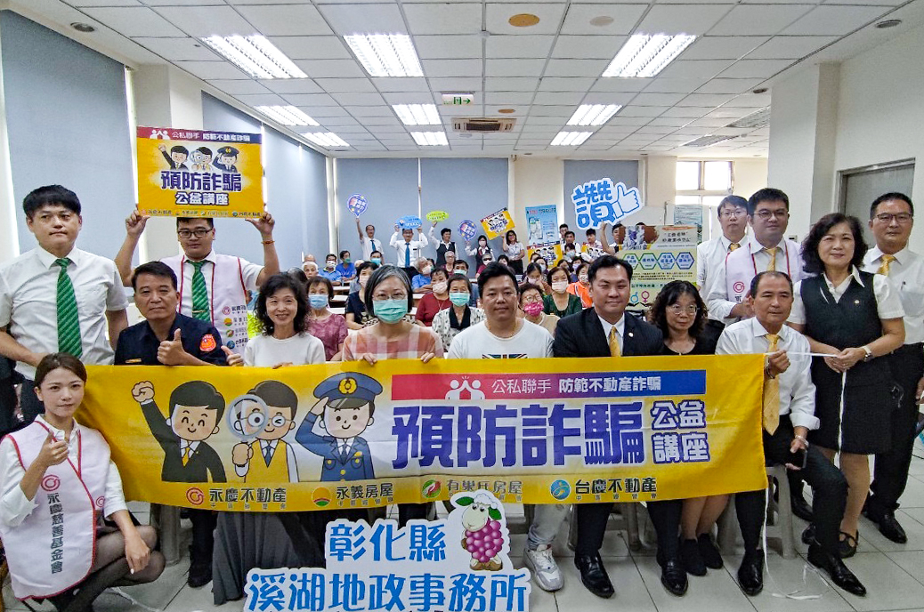 永慶不動產彰化溪湖加盟店長莊礎鴻、有巢氏房屋彰化溪湖西環加盟店長林美君與彰化縣溪湖鎮大竹里長楊儒斌,9/30攜手籌辦防詐講座,邀請彰化縣溪湖地政事務所主任黃麗卿、彰化縣警察局溪湖分局所長陳煌明、代書洪靜宜聯合講解常見詐騙類型,彰化縣溪湖鎮長何炳樺也現身講座,鼓勵民眾參加。