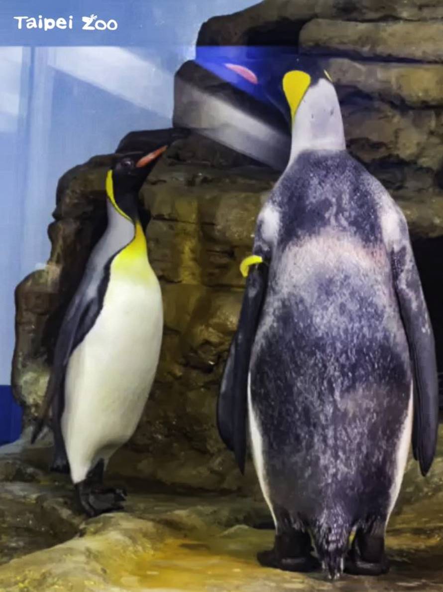 北市動物園的國王企鵝年齡偏大,派出最年輕的成員出去交朋友。(圖/北市動物園提供)