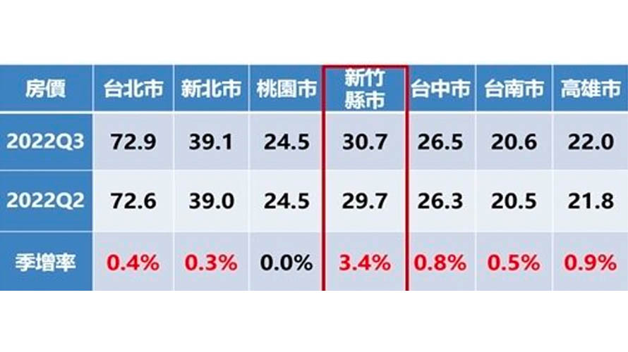 而其實從七大都會區房價季增率表現,可觀察出房價漲幅大縮的情形,永慶房產集團業務總經理葉凌棋分析,從數據中可發現房價和緩跡象,2022年第三季房價與第二季相比,除了新竹縣市仍有3%以上漲幅外,其餘六都為持平或漲幅在1%內,顯示近期房價呈現持平盤整格局,顯示在消費者對於房價看法出現對峙的狀況下,買賣雙方價格認知僵持,出現漲不動的跡象,房價已有見頂之趨勢。