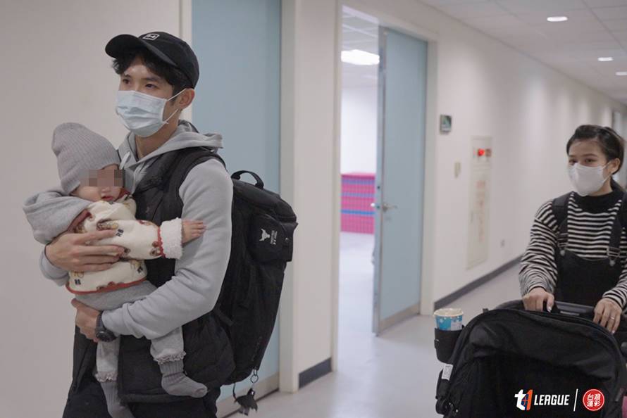 ▲蔣淯安太太都會帶小孩一起去看老公打球。(圖/T1提供)