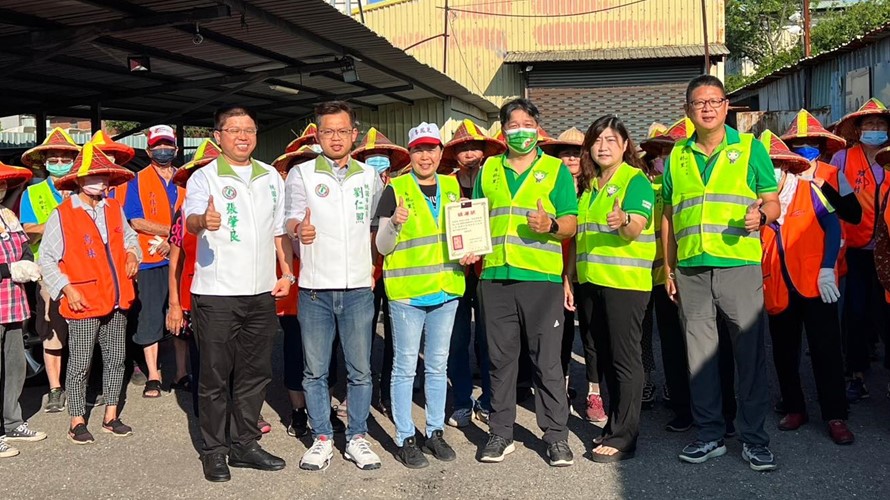 ▲桃園市龍潭區烏林里的環保志工獲得有巢氏房屋桃園區經管會捐贈64件反光背心。(圖/永慶房屋提供)