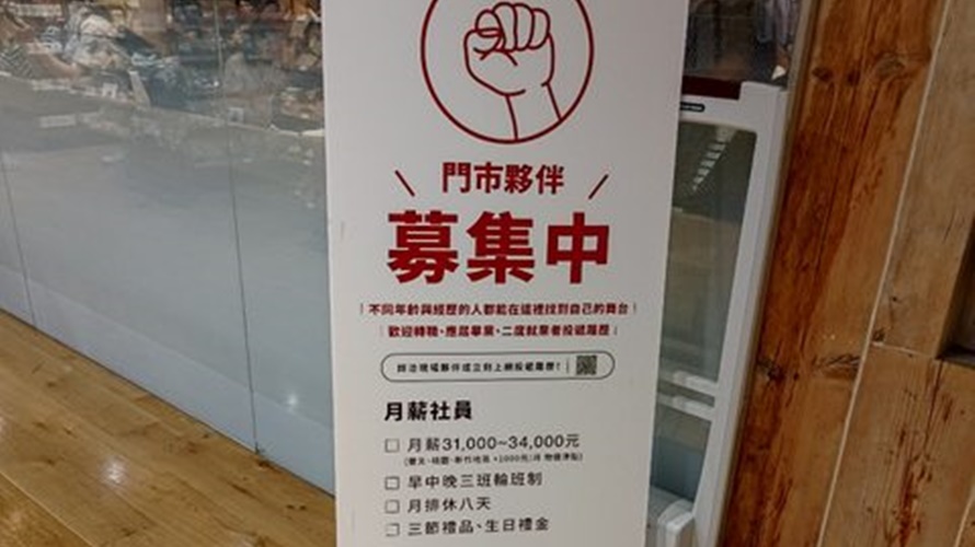 有民眾在台北的百貨逛街,看到日本連鎖家居品牌「無印良品」在徵人,招牌上寫社員月薪31000至34000元,原PO有些驚訝,認為這樣的薪水在台北要怎麼生活?不過網友認為,如果是住在家裡,這個薪水不僅夠,還可以存錢。