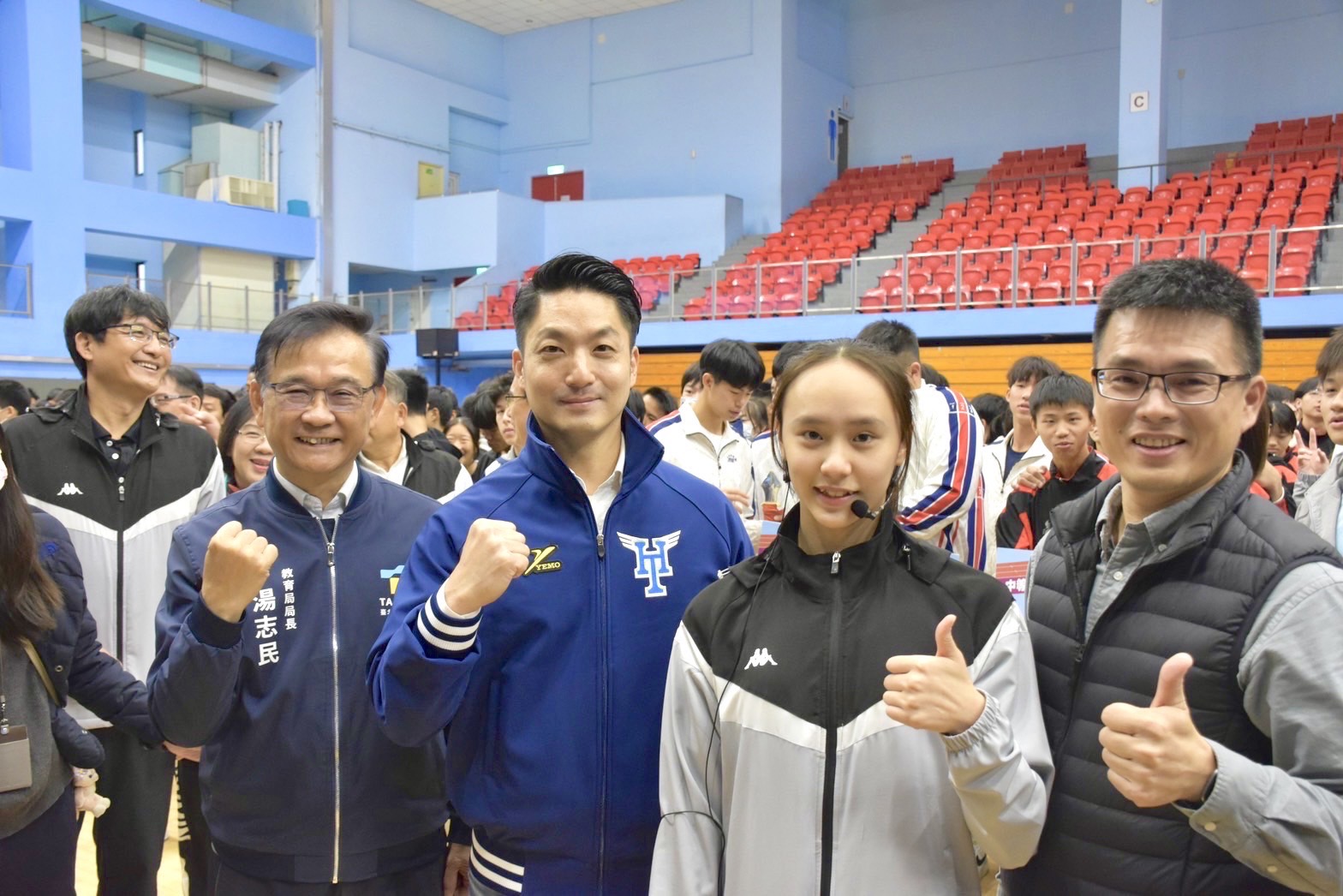 ▲臺北市蔣萬安市長長期支持學校體育發展,特別蒞臨現場,與教育局湯志民局長共同為選手們加油打氣。(圖/北市教育局提供)