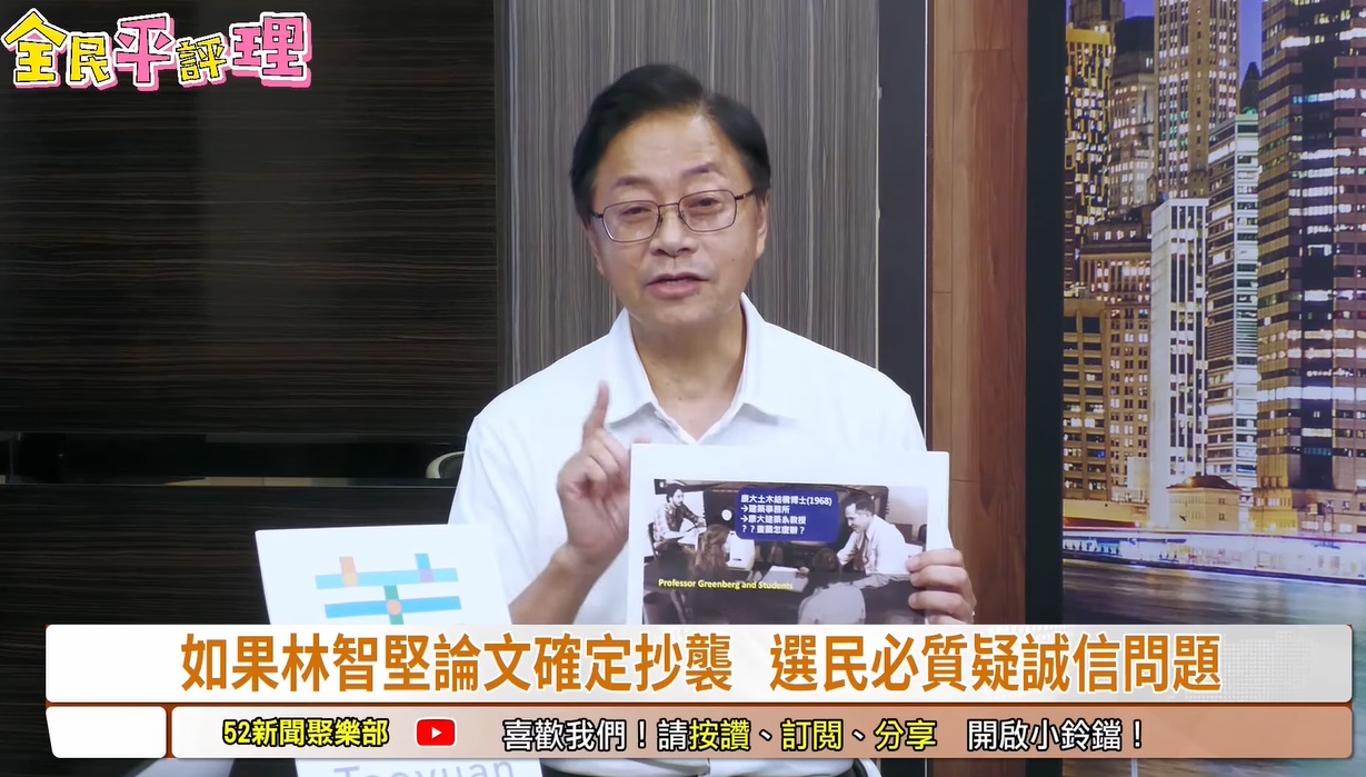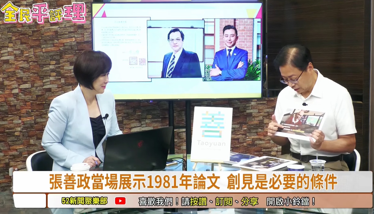 ▲張善政分享自己論文,並批林智堅與其指導教授陳明通都相當失格。(圖/翻攝自《全民平評理》)