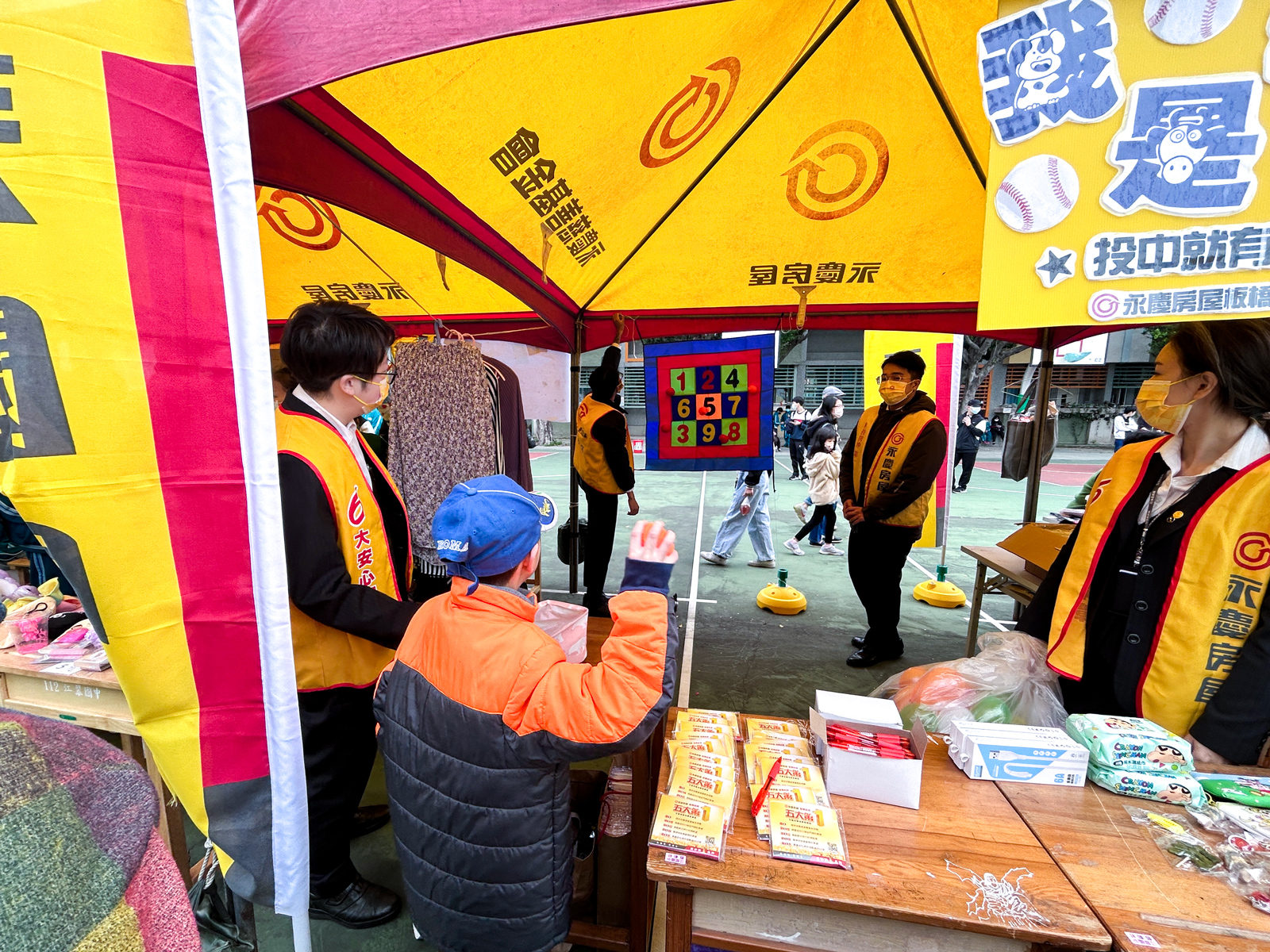 ▲永慶房屋參加江翠國中47周年校慶,規劃棒球九宮格遊戲,與學生互動。