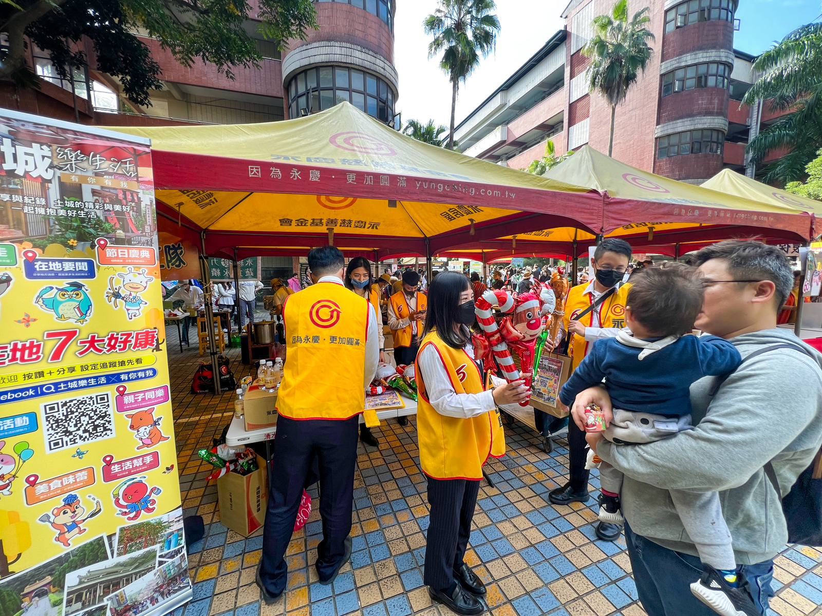 永慶房屋連續2年參加清水高中校慶活動,今年提供60頂活動帳篷支持學校,讓學生們以可回收物品為設計理念,舉行多種類型攤位活動,永慶房屋人員也在校內擺設攤位,準備可愛的聖誕造型氣球,贈送現場的大小朋友,學務主任林呈隆分享,感謝永慶房屋連續2年提供活動帳篷,讓學生們順利舉辦以永續循環為理念的攤位活動,也呼籲大眾平時可自備環保餐具,減少一次性餐具的好習慣。