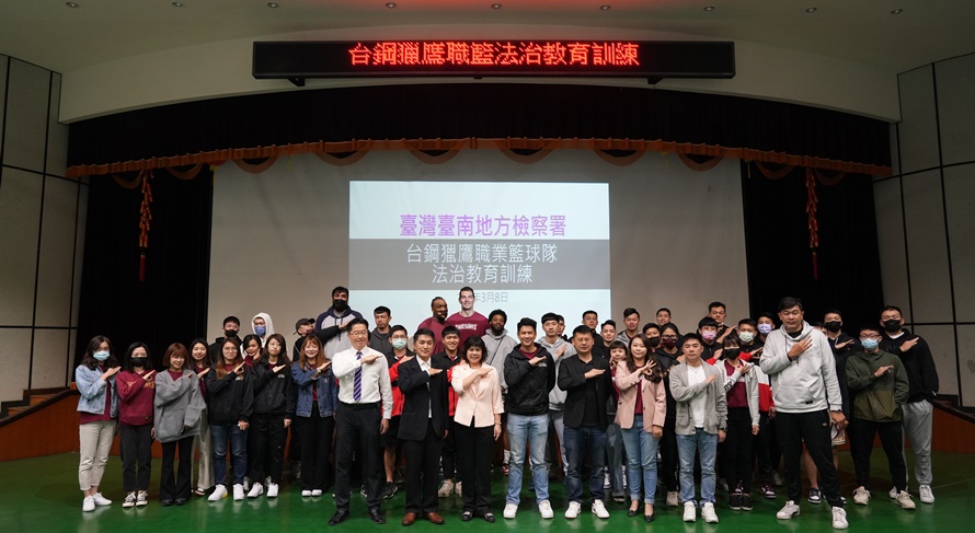 臺南台鋼獵鷹今(8)日於臺南地檢署實施法治教育,全體球員及後勤工作人員共45位一同參與,可見球團對法治教育的重視,藉由過去的實際案例與法律常識,建構正確的法治觀念,球團會全力捍衛職籃運動乾淨空間。