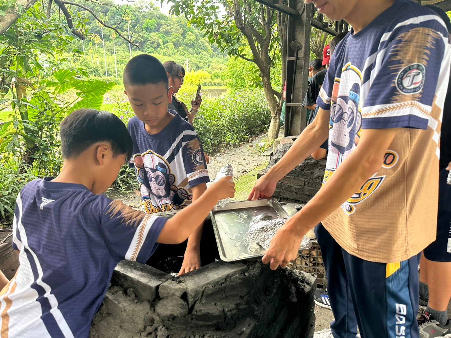 來自「基隆Enjoy社區棒球隊」、「大神岡社區棒球聯盟」 的小球員,這次在基金會的促成下來到信望愛智能發展中心於后里附設的「沙發后花園」進行公益服務,小球員當起志工一點都不馬虎,除了幫忙整理環境和進行鋤草,並一起愉快地享用服務後的焢窯美食,現場笑聲不斷,孩子們直呼「非常有趣!」