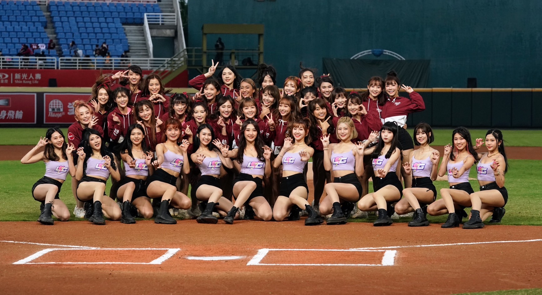 ▲樂天女孩與電豹女桃園棒球場齊聚。(圖/桃園雲豹提供)