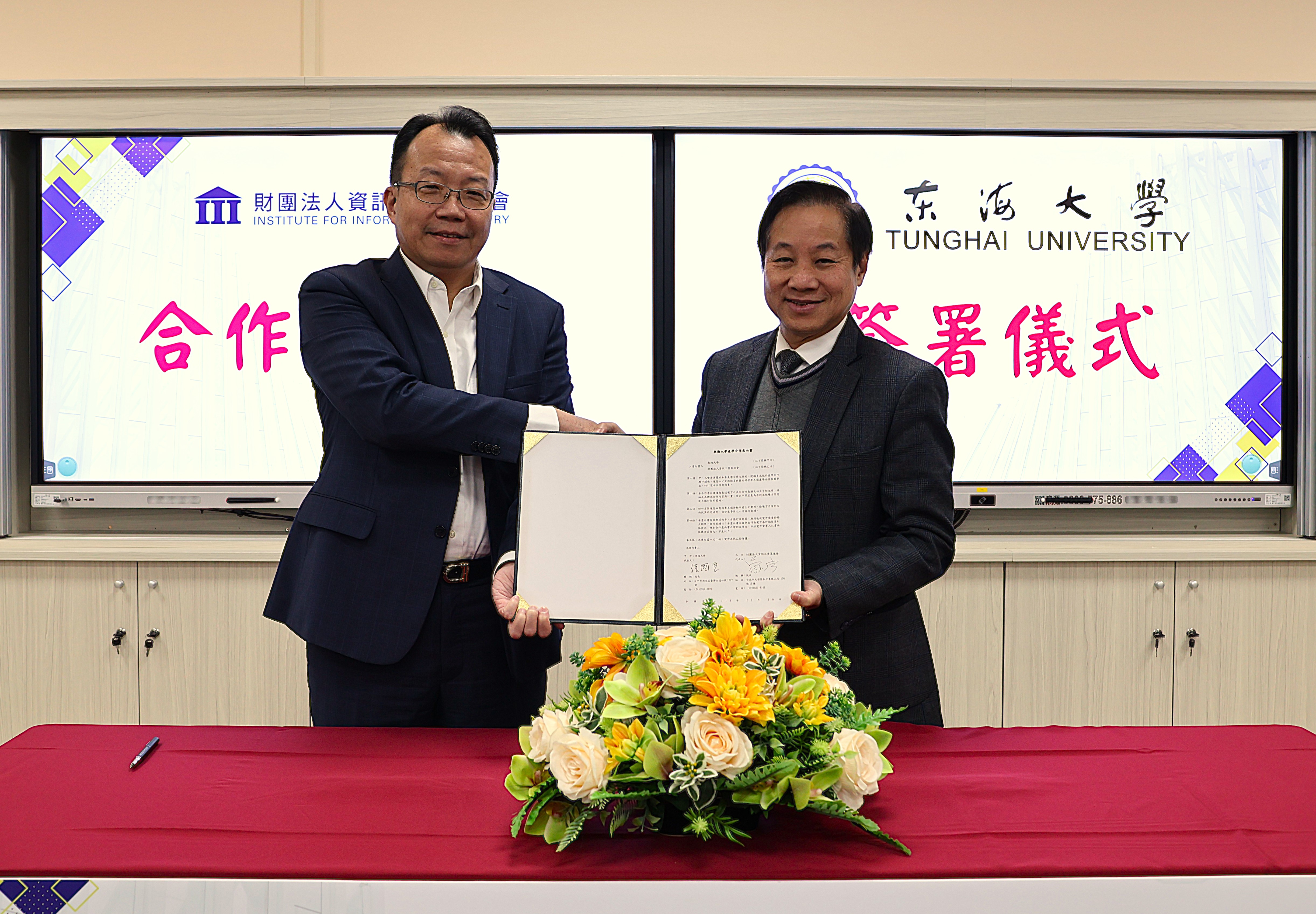 為透過科技創新推動綠色智慧城市,東海大學攜手資策會,將共同致力於推動AI技術在教學及產業上的應用,進行前瞻技術開發與人才培育。(圖 / 東海大學提供)