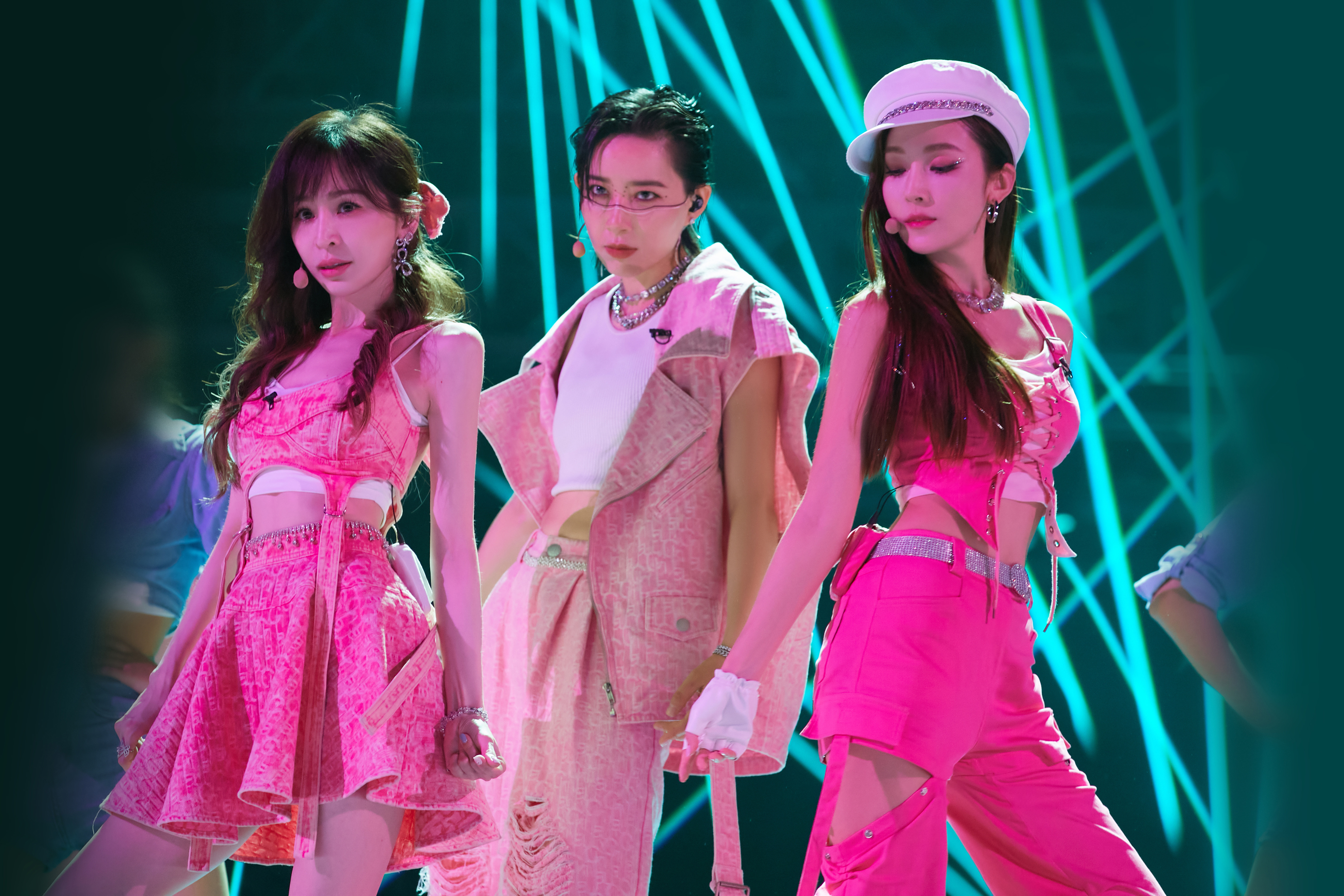 ▲王心凌(左)擔任隊長和鄭秀妍(右)、李斯丹妮(中)一起表演。(圖/芒果TV提供)