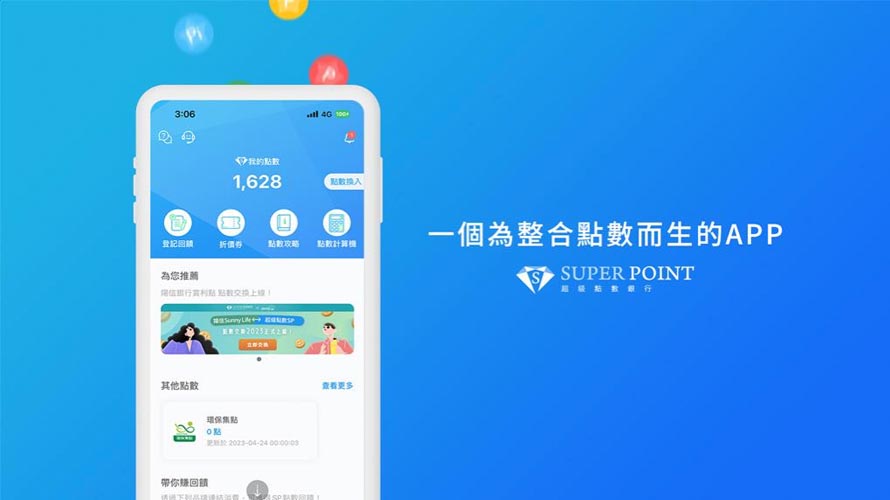 SUPER POIN 是一個全開放式的中立點數應用平台,目標在成為消費者的點數中繼站,期待將用戶手頭點數整合為一統整運用,不僅能夠集中轉換為想使用的點數,更能直接於SUPER POINT消費,多元應用無門檻。SUPER POINT更將市面上大部分的電子票券收納,消耗點數絕對不會沒地方花,每點都能有價值的使用,透過點數就能完成消費、支付、點數回饋、轉點一條龍服務!