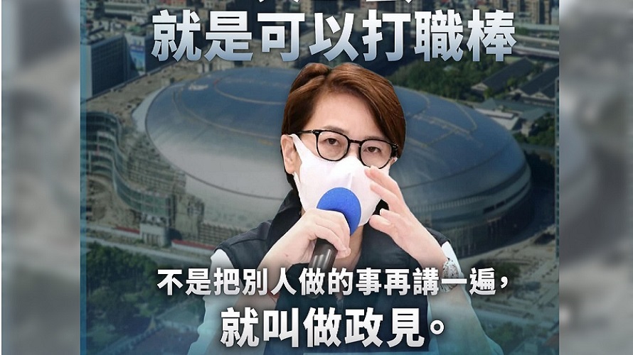 她也提新竹棒球場的例子,認為「一個政黨為了選舉,蓋出負評連連、充滿安全疑慮,而且廁所門還裝反的新竹球場,還讓蔡總統去剪綵背書,真的沒資格再說自己多為公共安全著想」。另外黃珊珊也傳出請辭台北市副市長的職位,台北市長柯文哲也證實此事,月底將只剩一位副市長,除了請辭的黃珊珊,還有中風臥病的蔡炳坤都不在崗位上。