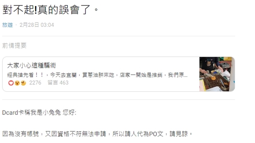 ▲店家女兒上網喊冤,認為是誤會。(圖/取自Dcard)