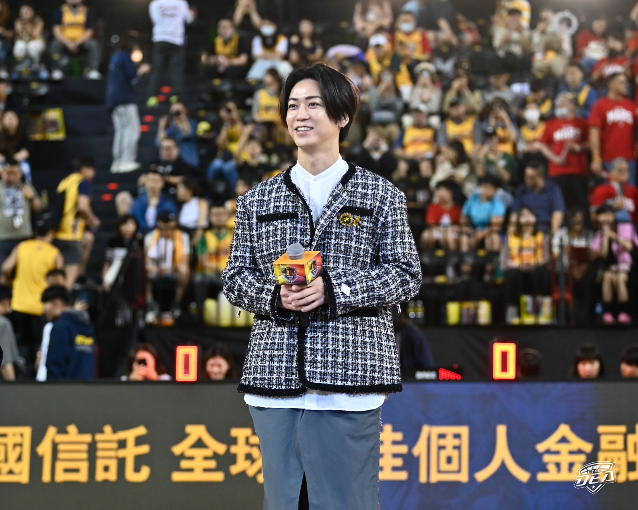 T1職籃聯盟今(13)日在臺北大巨蛋舉行新北中信特攻主場賽,迎戰臺北地主球隊臺北台新戰神,中場請到來台宣傳電影的日本巨星龜梨和也,他擔任中場遊戲的關主,也親自送出電影周邊禮物給獲勝的球迷。