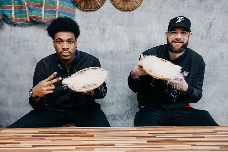 ▲首度體驗新竹米粉DIY,阿提諾、伊波卡初嚐米粉就愛上。(圖/攻城獅提供)