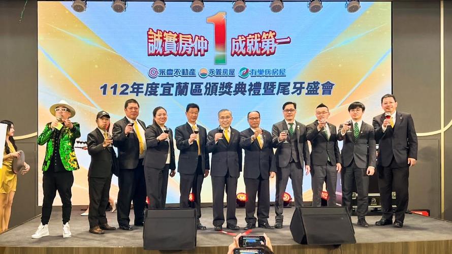 喜迎龍年到,永慶房產集團2023年經營績效開紅盤,為了犒賞衝出好成績的全台夥伴,永慶集團全台跑透透、發起15場尾牙大串聯,預計席開2,700桌。昨(17)日由宜蘭區加盟四品牌-永慶不動產、永義房屋、有巢氏房屋、台慶不動產-聯合尾牙打頭陣,齊聚近600人慶祝去年宜蘭區店數雙位數成長!地方大家長宜蘭縣長林姿妙更親臨祝賀,還有宜蘭市長陳美玲、宜蘭縣不動產仲介經紀商業同業公會理事長陳振坤等貴賓蒞臨同樂。