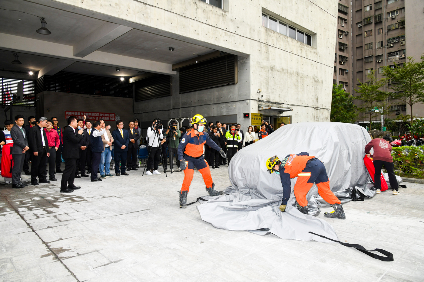 捐贈儀式當天,由永慶不動產暨永義房屋北區經管會長楊世旭、有巢氏房屋暨台慶不動產北區經管會長許哲瑋代表捐贈,由新北市政府消防局長陳崇岳代表受贈,新北市議員周勝考親自到場見證。陳崇岳局長感謝永慶房產集團加盟四品牌北區經管會展現公益之心,慷慨捐贈這批滅火毯,大大提升救災效能,也期望藉此拋磚引玉,讓社會大眾更多人關注防災及救災的安全問題。