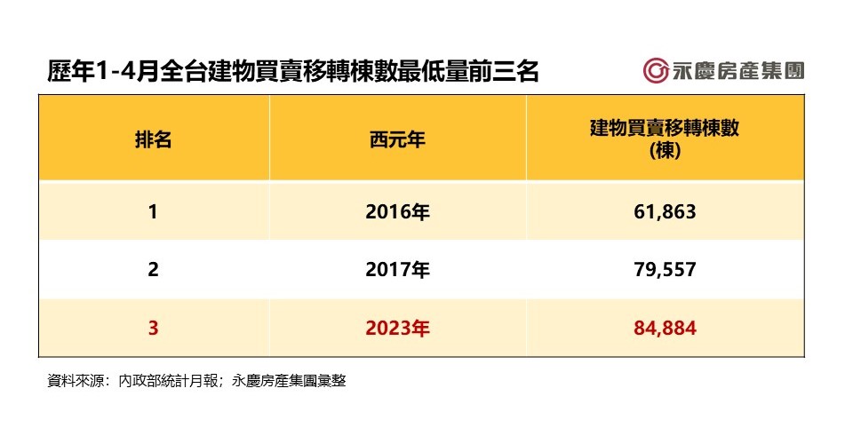史上第三低! 2023年全台1-4月房市交易僅8.5萬棟