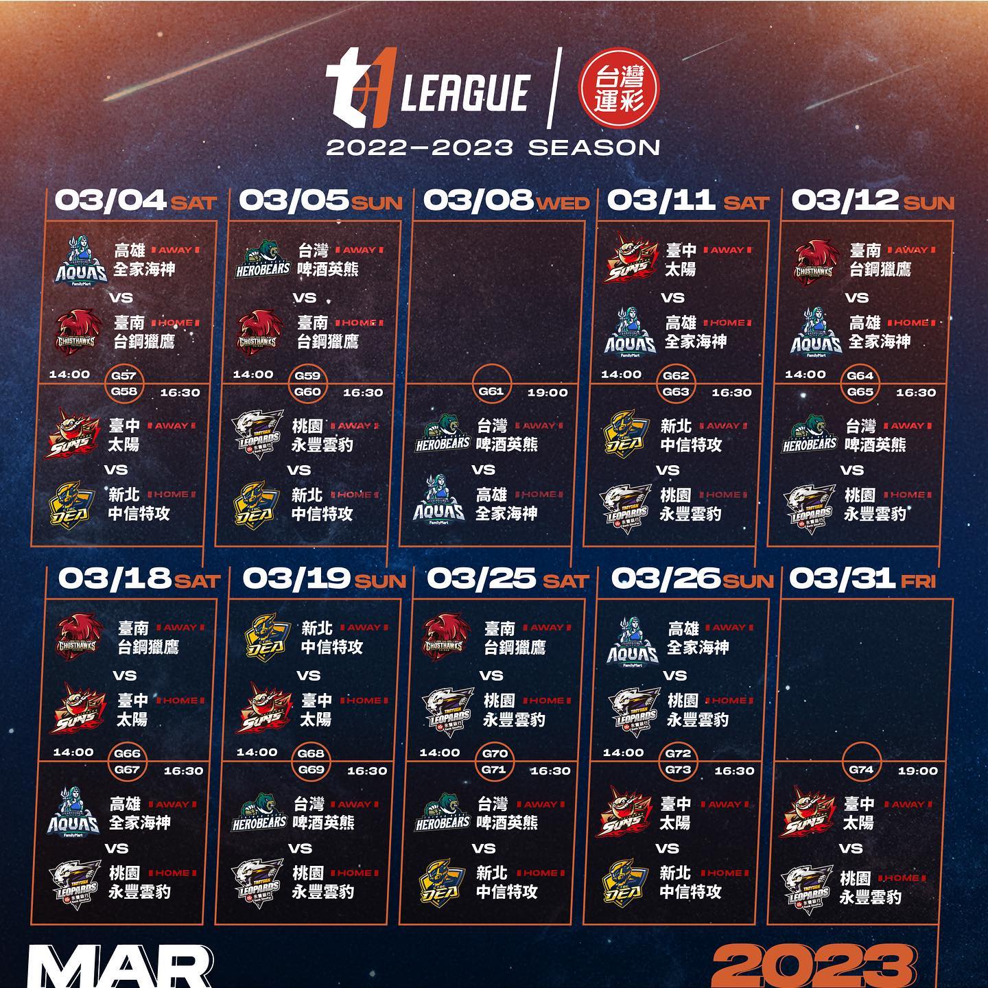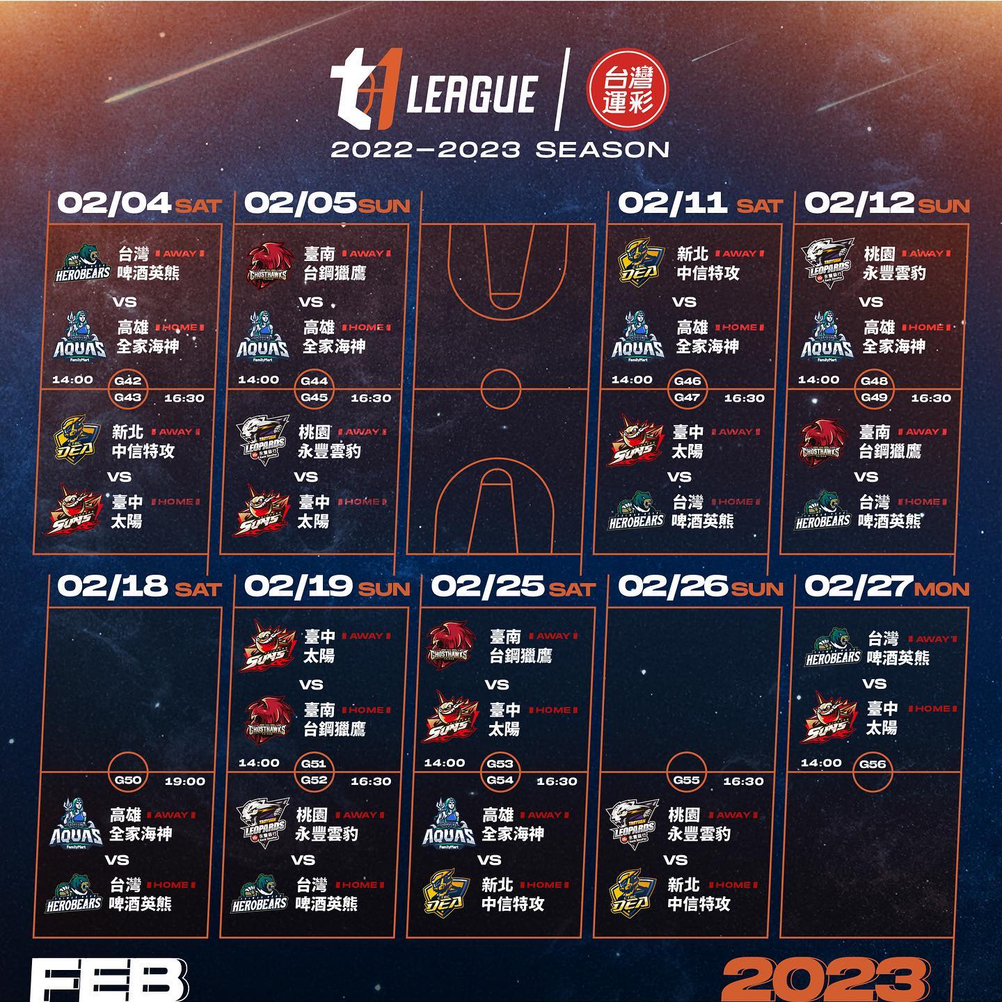 台灣T1職籃下半季,在農曆春節過後2月馬上就有比賽登場,緊接更在2月底將迎來全明星賽。《今大條新聞網》就整理出下半季賽季,供球迷參閱不錯過任何一場球賽。