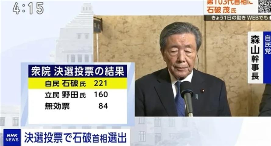石破茂成功連任 自民黨在首相指名選舉中險勝在野黨